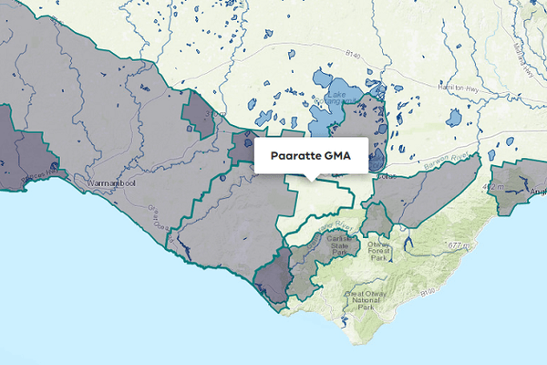 The Newlingrook Groundwater Management Area (GMA) covers a layered aquifer sequence of sand and gravel, mixed with silts and clays and is centred on the Gellibrand River, where it partially underlies the South West Limestone GMA.