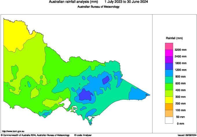 - The lowest rainfall - between 200 mm and 300 mm - was received in the Victoria’s north-west.